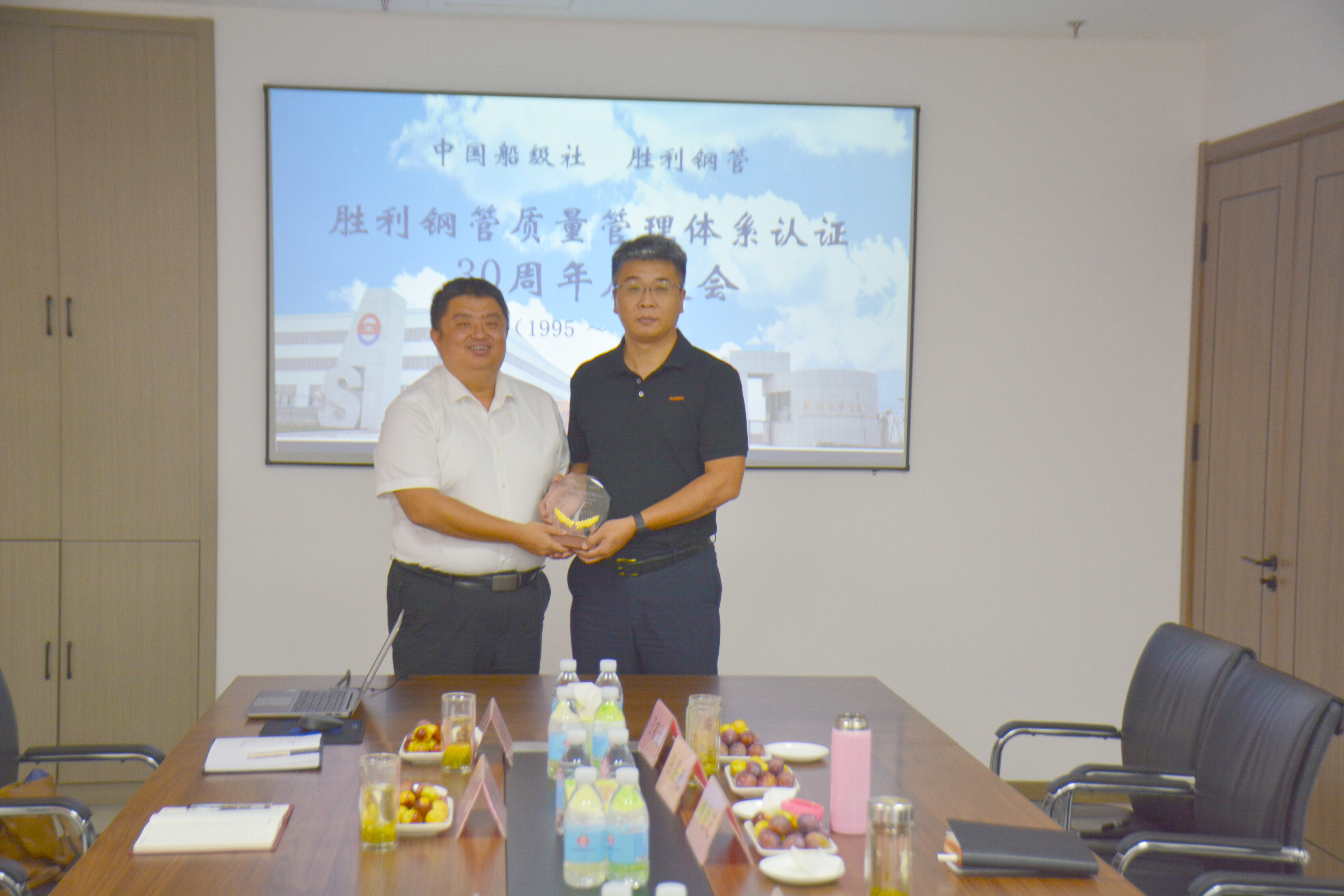? 2025 年 8 月 31 日,山東勝利鋼管有限公司(以下簡稱“山東勝利鋼管”)與中國船級社質(zhì)量認(rèn)證有限公司(以下簡稱 “中國船級社”)質(zhì)量管理體系認(rèn)證合作 30 周年座談會,在勝管集團會議室隆重舉行。本次座談會以 “質(zhì)為本 責(zé)為魂 效為翼,三十年認(rèn)證賦能企業(yè)長青” 為核心主題, 共憶合作歷程,共話未來發(fā)展。