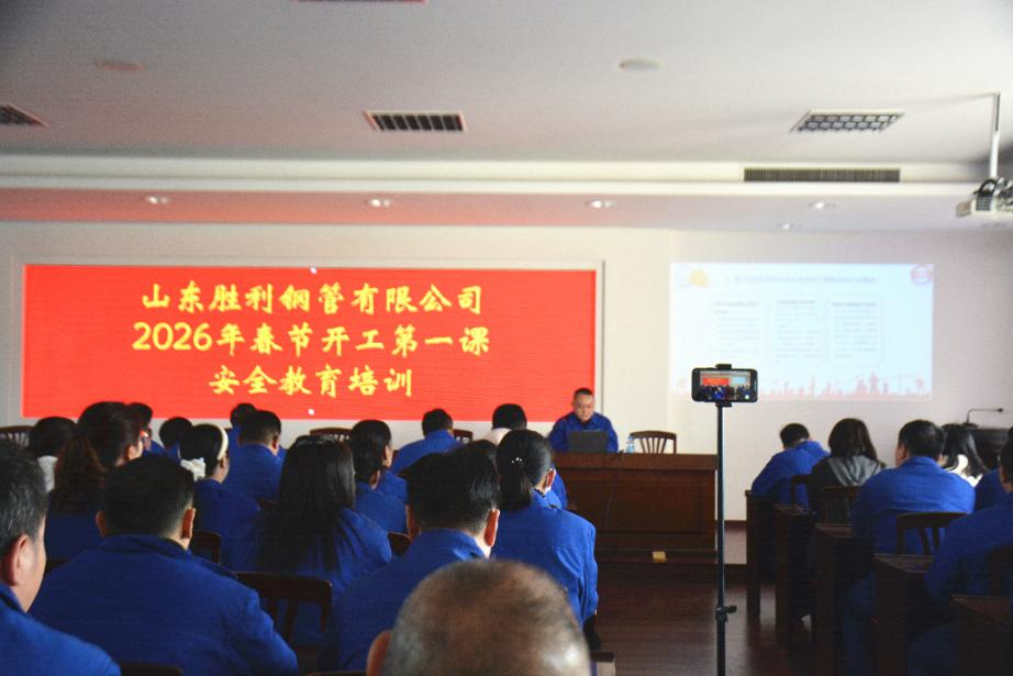 ?福馬迎新歲,新春啟新程。2月24日上午8:30,山東勝利鋼管有限公司于辦公樓四樓會(huì)議室開展了2026年春節(jié)復(fù)工復(fù)產(chǎn)安全生產(chǎn)“開工第一課”專題培訓(xùn)。公司總經(jīng)理張圣光為全體員工授課,并對(duì)下一階段安全生產(chǎn)工作作出了部署。